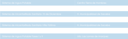 Works designed to give and/or improve the water treatment/provision infrastructure in different areas of the bolivian territory.